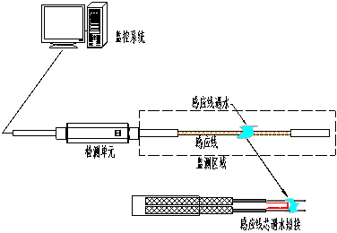 當有液體與液冷感應線接觸時,液體浸入感應線編織層,使兩根感應線芯導通,形成回路,檢測模塊檢測到漏液情況,發出報警信號。