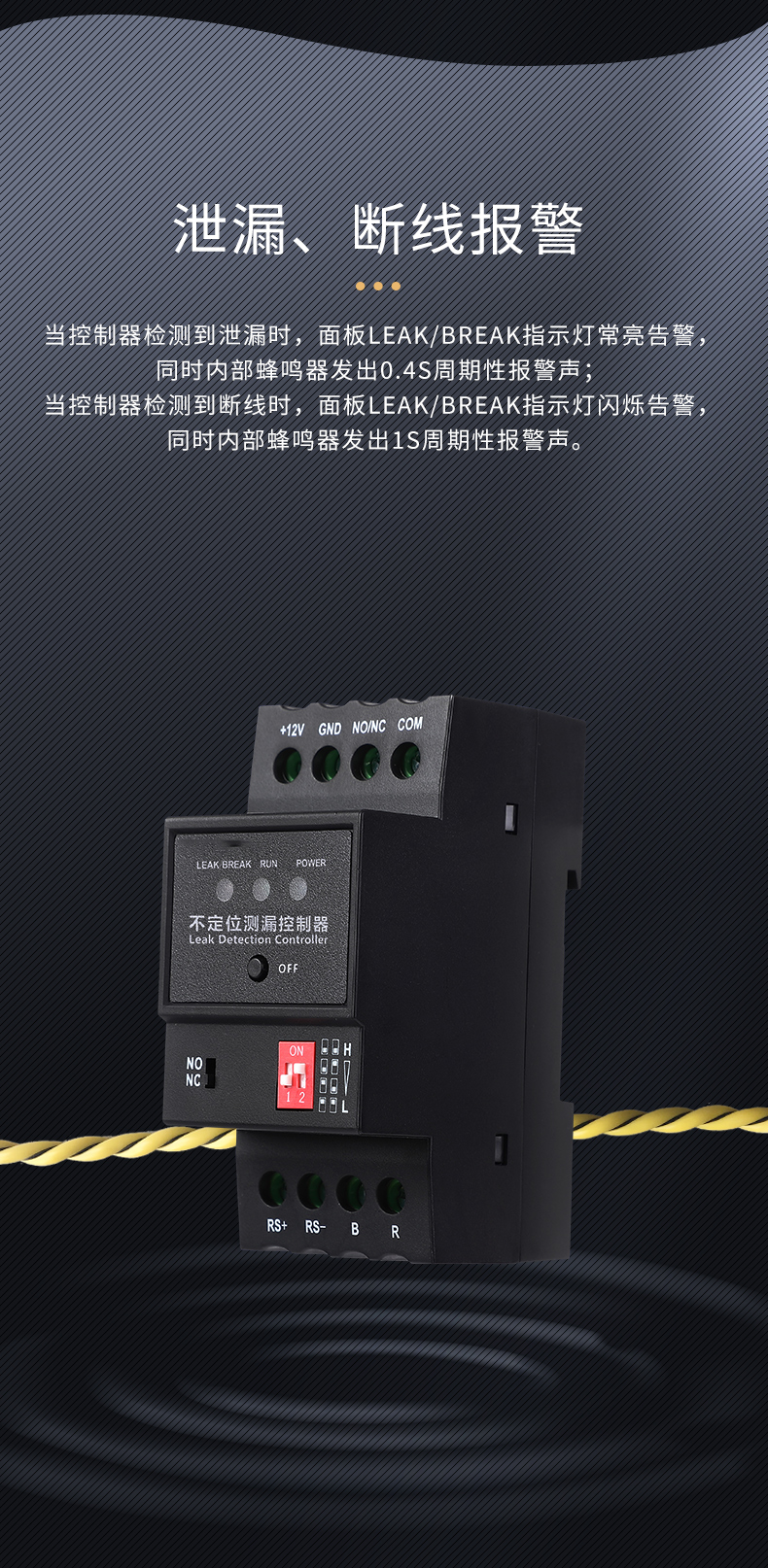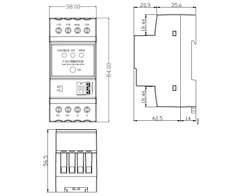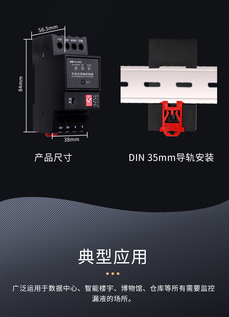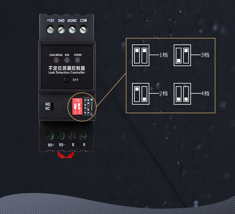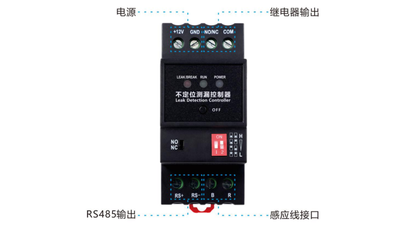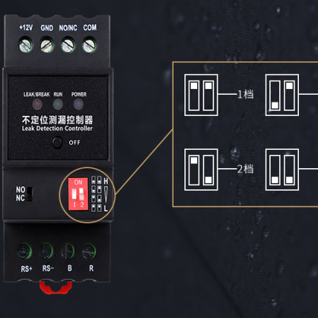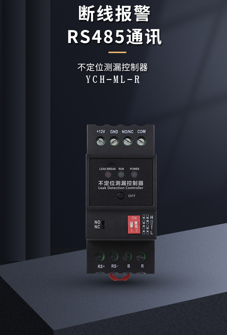 YCH-ML-R 不定位測漏控制器是一款用于檢測液體泄漏的設備,支持斷線報警功能,可通過面板上的撥碼開關調節控制器的靈敏度,以適應不同的應用場景。控制器輸出的繼電器觸點信號與RS485信號,可與各種監控系統相整合,實現遠程報警及遠程設備的控制。