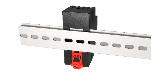 請將控制器安裝于牢固的室內采集箱或機柜等易于維護檢查的場所,安裝位置應避免高溫高濕、振動、腐蝕性氣體環境及其他電子雜訊干擾源等。控制器扣裝于標準的35毫米DIN導軌上,安裝示意圖如下: