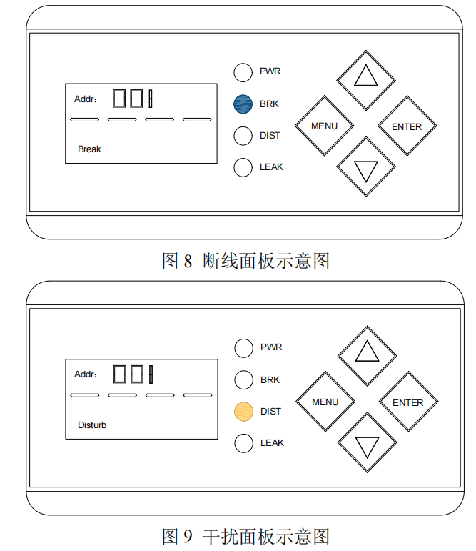 2. 斷線指示燈(BRK),正常熄滅,線纜斷裂呈閃爍狀態;
